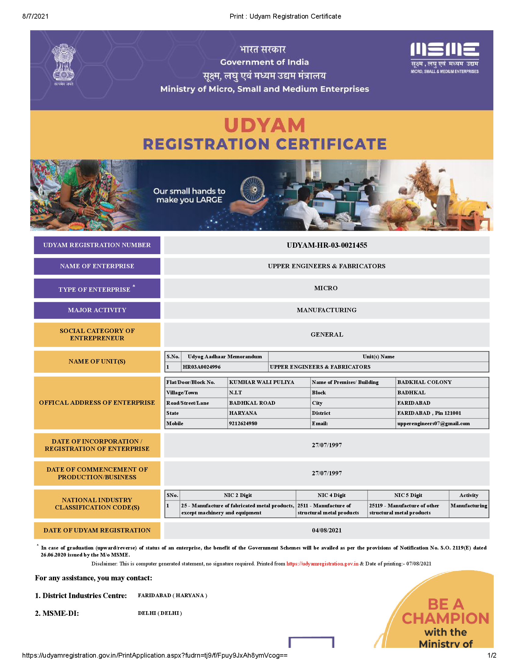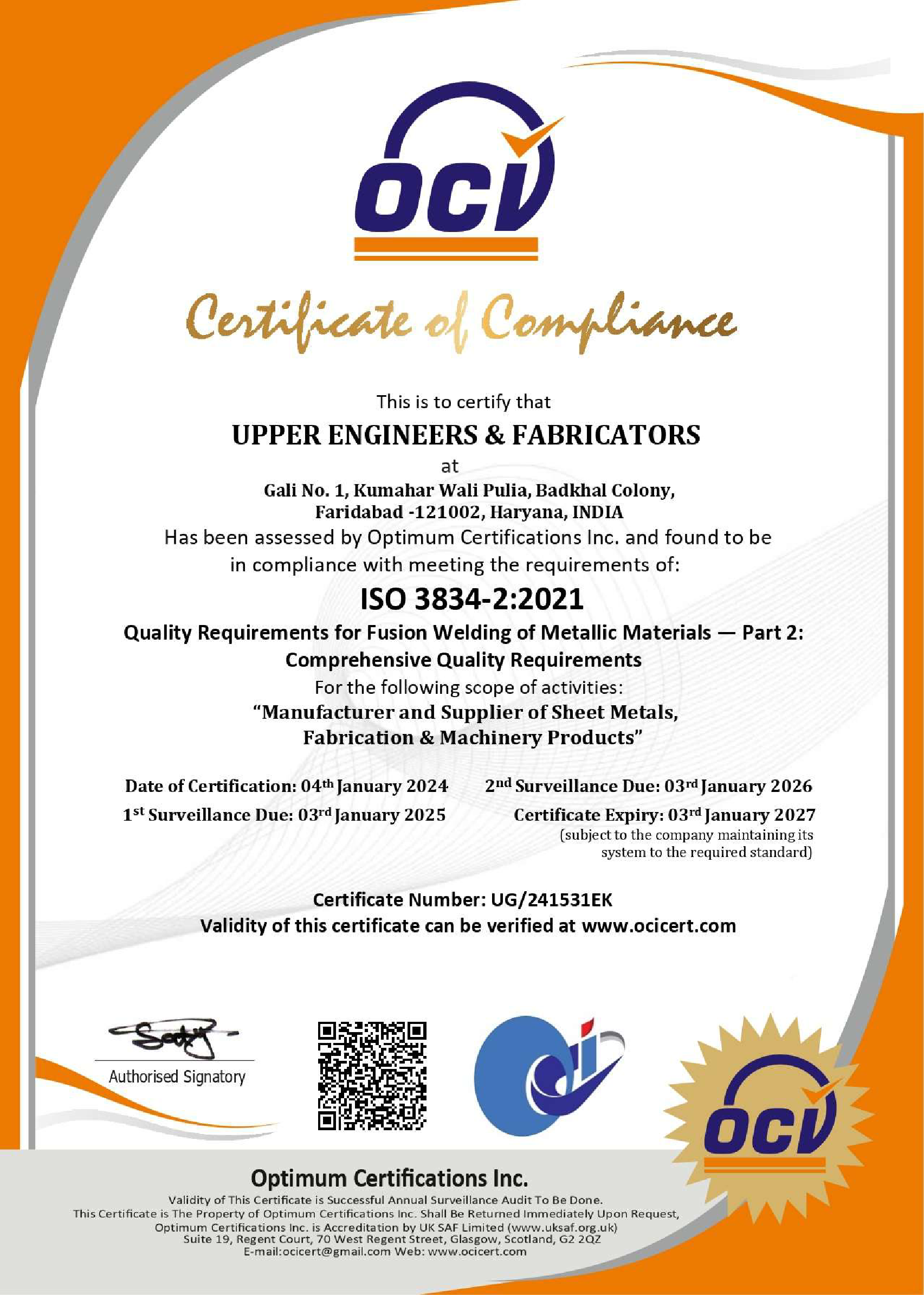 Upper Engineers is an ISO 9001:2015 certified engineering firm established in 1997 in Faridabad, Haryana. With over two decades of expertise, we provide complete fabrication solutions to the sheet metal industry, serving both India and the global market. Our commitment to excellence, cutting-edge technology, and a skilled team of professionals enable us to deliver high-quality, precise, and reliable services. From CAD designing to CNC laser cutting, machining, assembly, and more, we cater to a diverse range of industries including railways, defence, aerospace, automotive, and industrial fabrication. At Upper Engineers, we pride ourselves on our innovation, quality, and dedication to meeting our clients’ unique needs with unparalleled craftsmanship and efficiency.