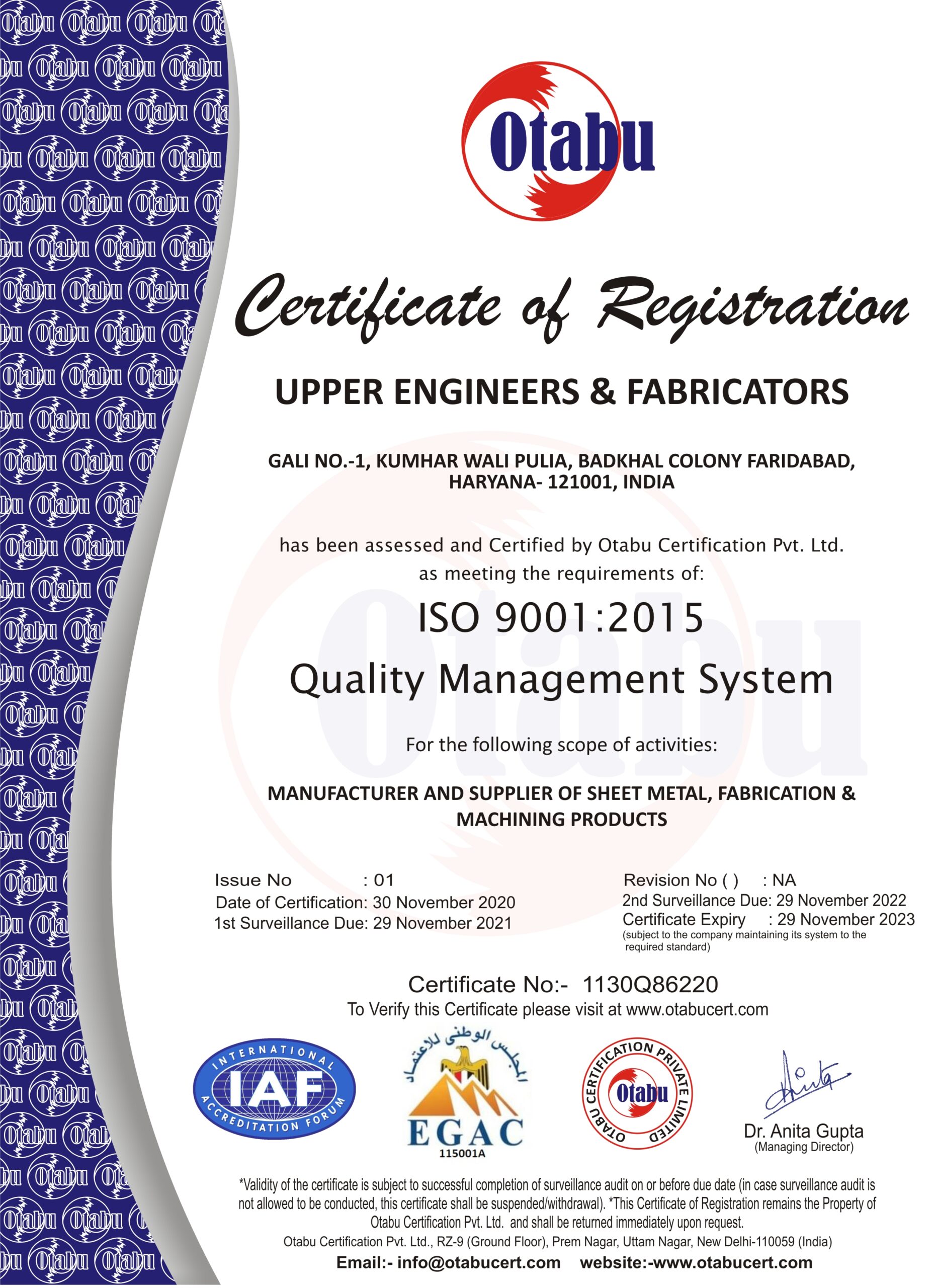 Upper Engineers is a certified engineering firm delivering precision sheet metal fabrication solutions since 1997.